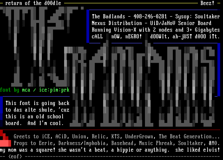 The Badlands - 408-246-0281 - Sysop: Soultaker