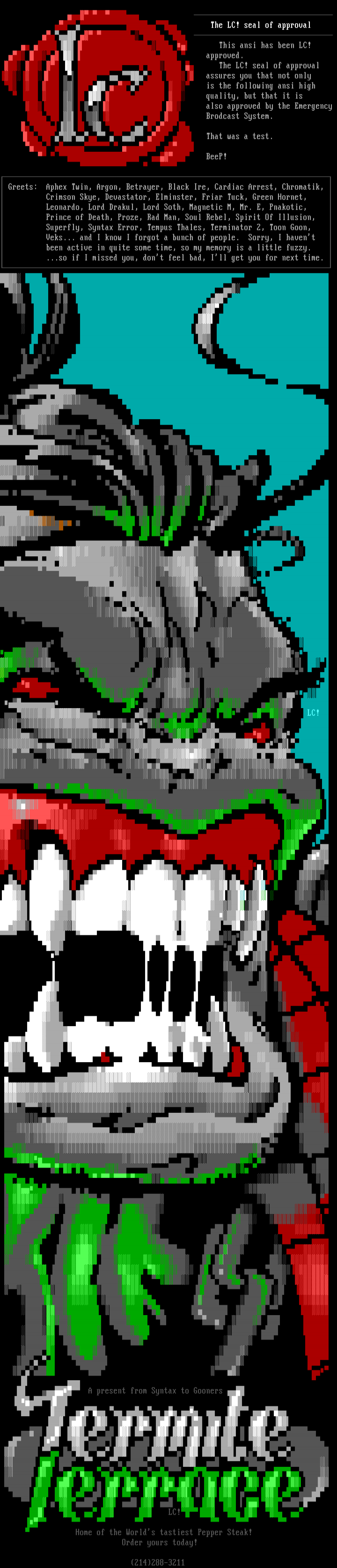 Greets: Aphex Twin, Argon, Betrayer, Black Ire, Cardiac Arrest, Ch