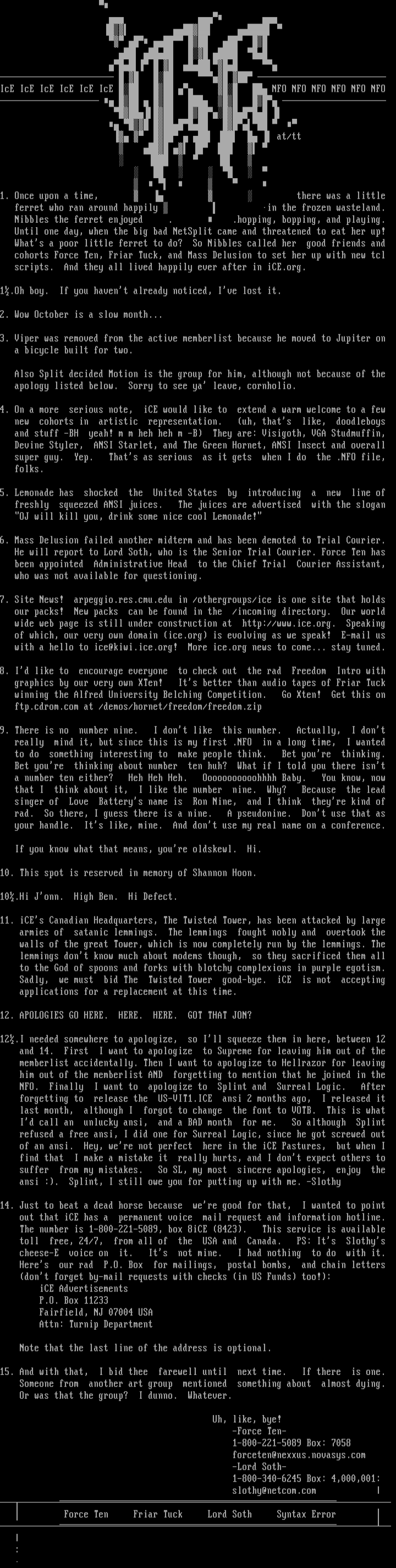 NFO. Finally I want to apologize to Splint and Surreal Logic. After