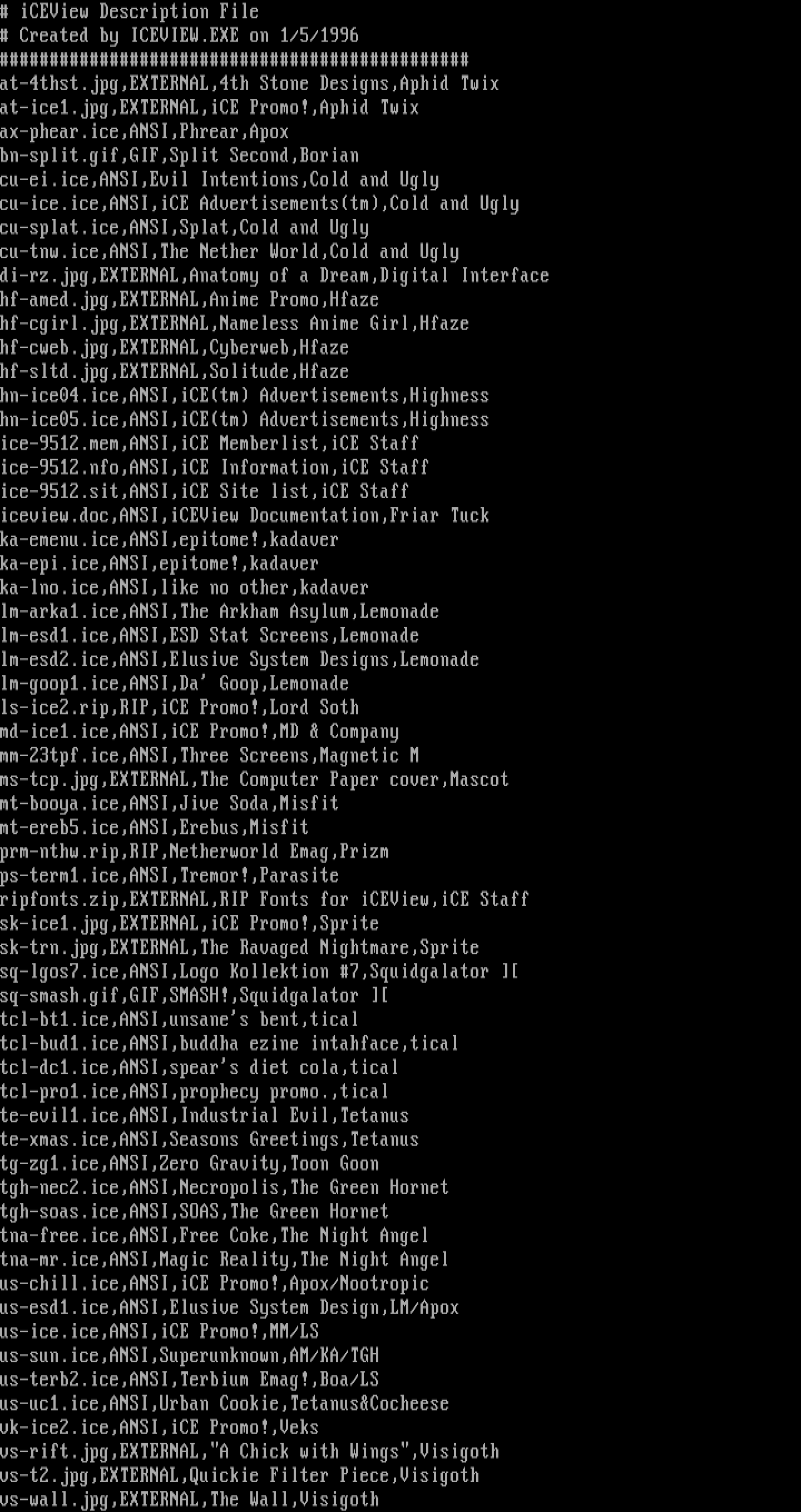 search on file extension such as ANS, ICE, RIP, LIT or DRK