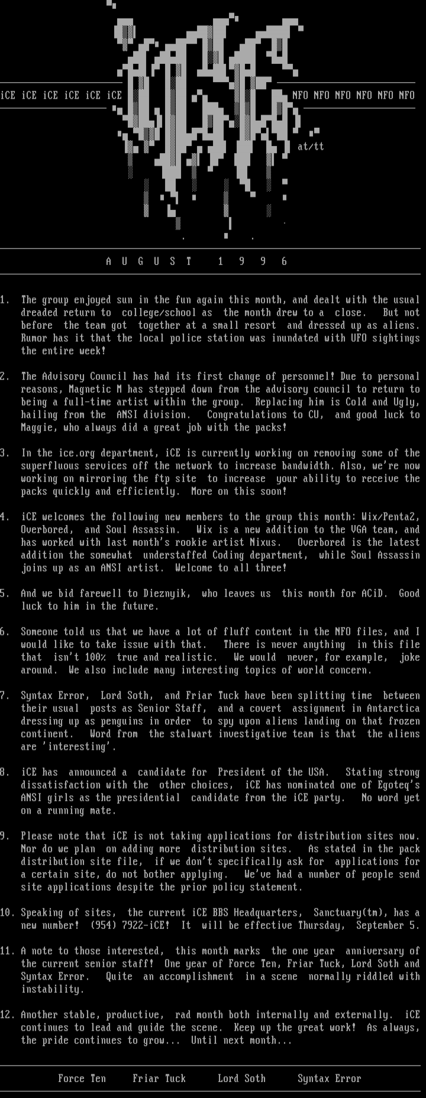 10. Speaking of sites, the current iCE BBS Headquarters, Sanctuarytm, has a