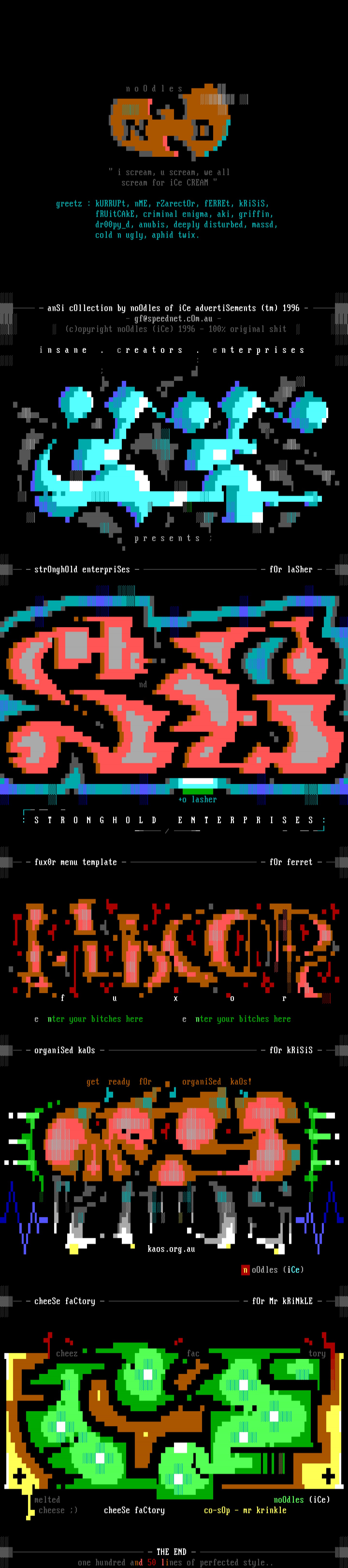 anSi cOllection by noOdles of iCe advertiSements tm 1996 - - gf@speednet.cOm.au - copyright noOdles iCe 1996 - 100 original shit