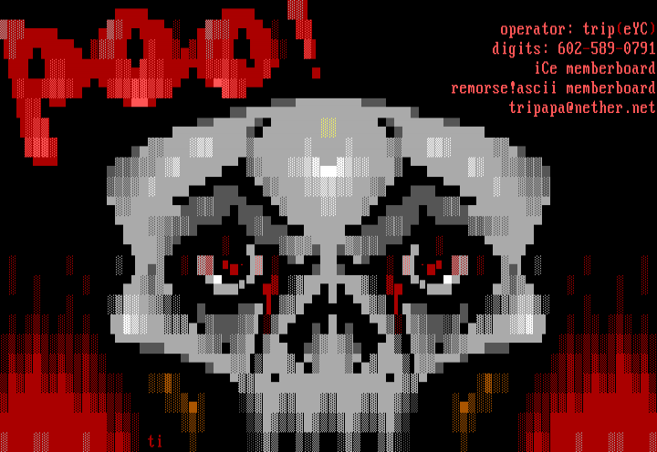 operator: tripeYC digits: 602-589-0791 iCe memberboard remorse!ascii memberboard tripapa@nether.net