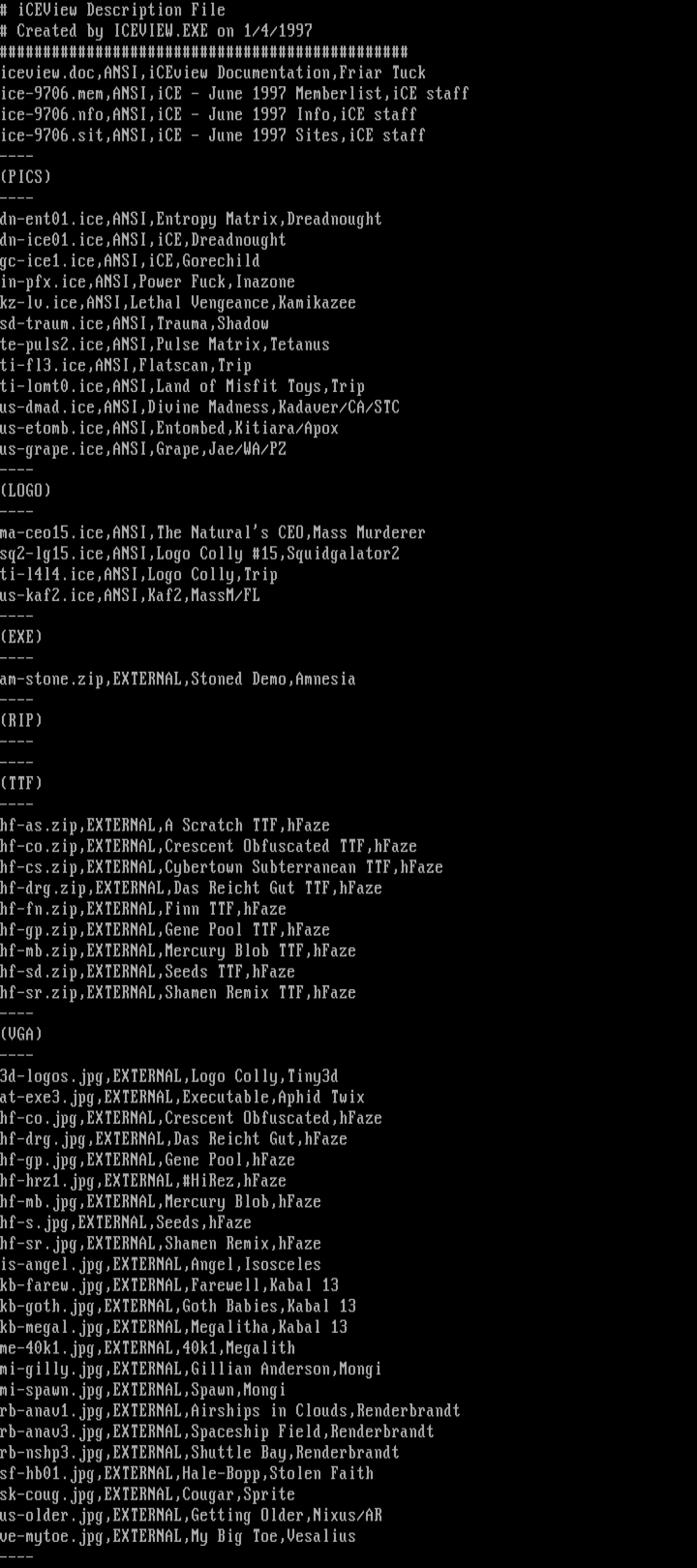search on file extension such as ANS, ICE, RIP, LIT or DRK