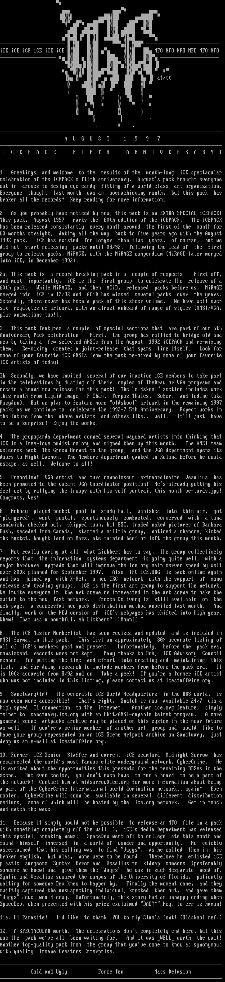 merged into iCE in 12/92 and ACiD has missed several packs over the years.