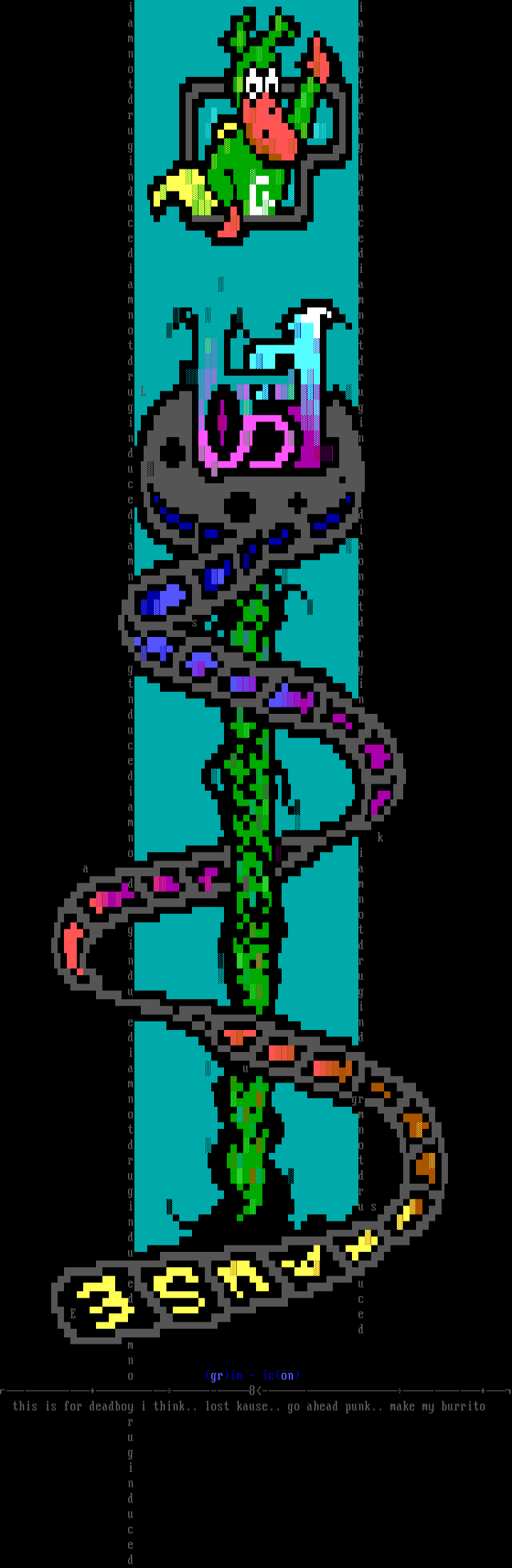 --+---8----+ this is for deadboy i think.. lost kause.. go ahead punk.. make my burrito