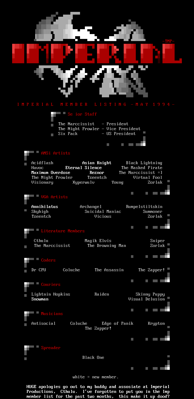 I M P E R I A L M E M B E R L I S T I N G - M A Y 1 9 9 4 -