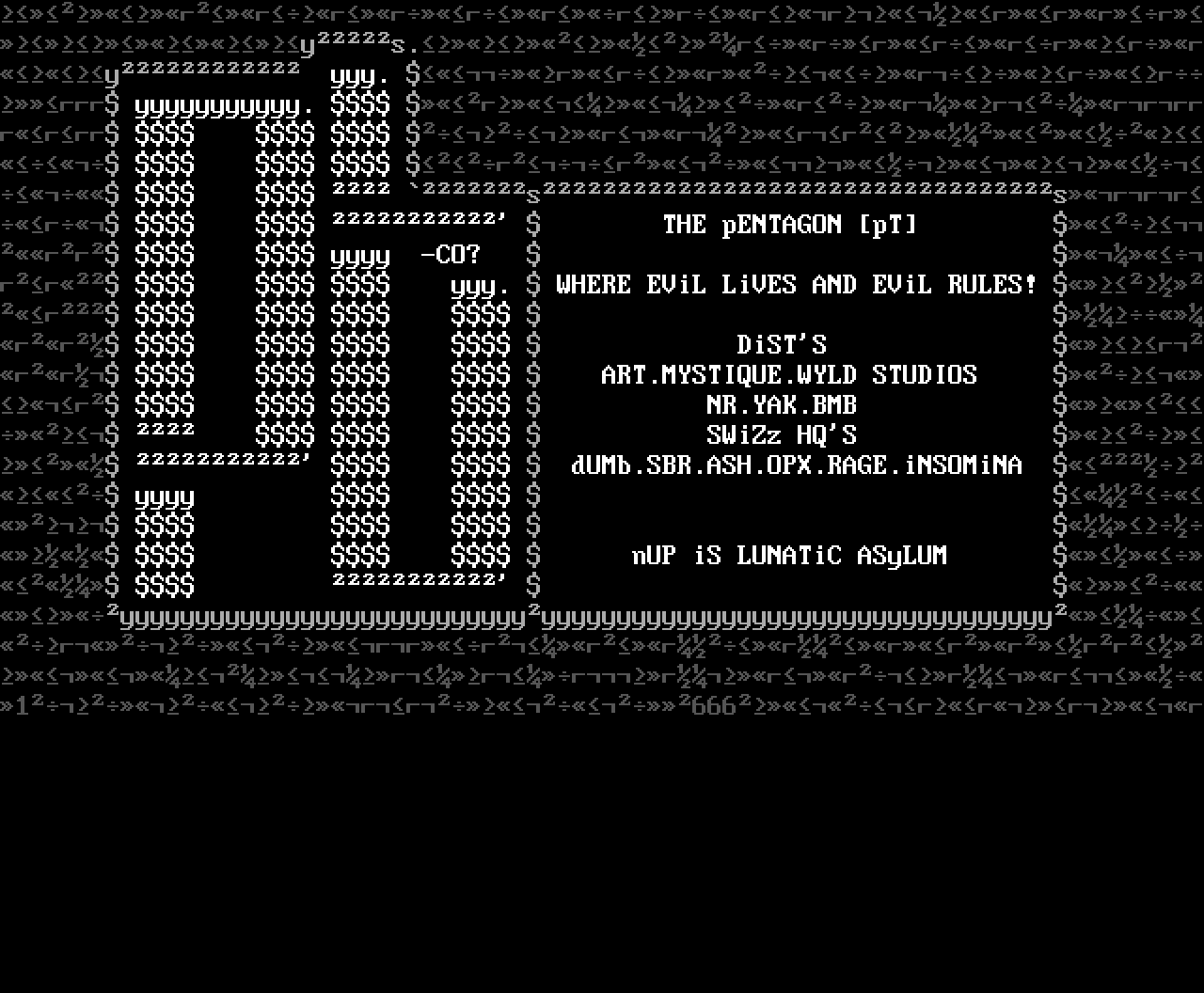 ys.y yyy. yyyyyyyyyyy. ss THE pENTAGON pT yyyy -CO? yyy. WHERE EViL LiVES AND EViL RULES! DiSTS ART.MYSTIQUE.WYLD STUDIOS NR.YAK.BMB SWiZz HQS dUMb.SBR.ASH.OPX.RAGE.iNSOMiNA yyyy nUP iS LUNATiC ASyLUM yyyyyyyyyyyyyyyyyyyyyyyyyyyyyyyyyyyyyyyyyyyyyyyyyyyyyyyyyyyyy1666