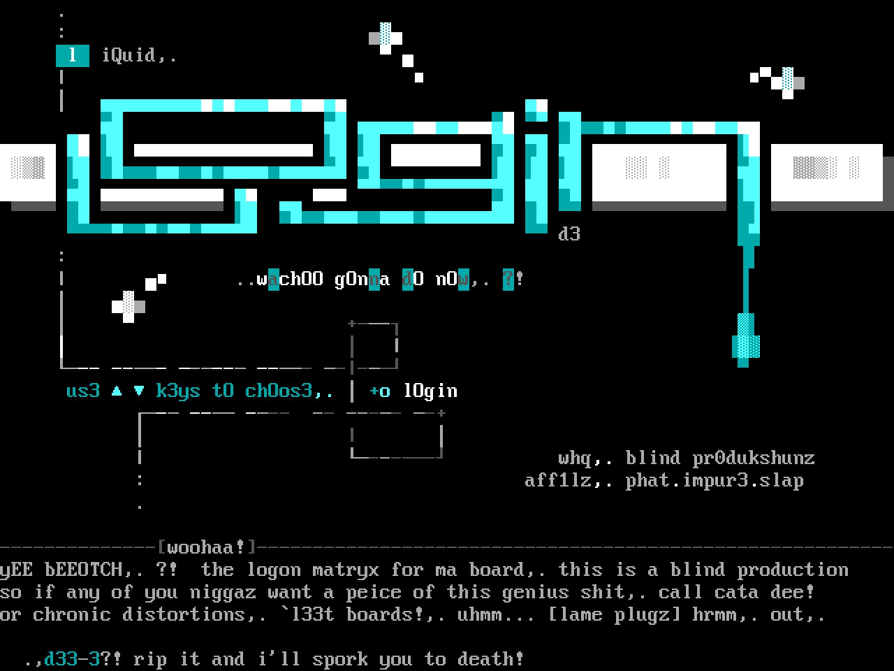 --------------woohaa!---------------------------------------------------------yEE bEEOTCH,. ?! the logon matryx for ma board,. this is a blind production