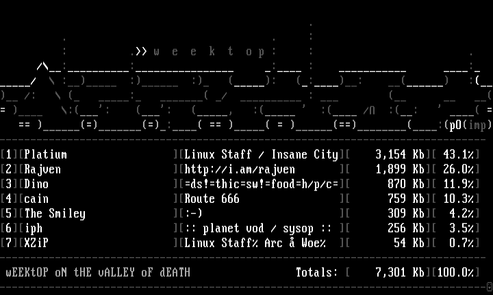 wEEKtOP oN tHE vALLEY oF dEATH Totals: 7,3O1 Kb1OO.O