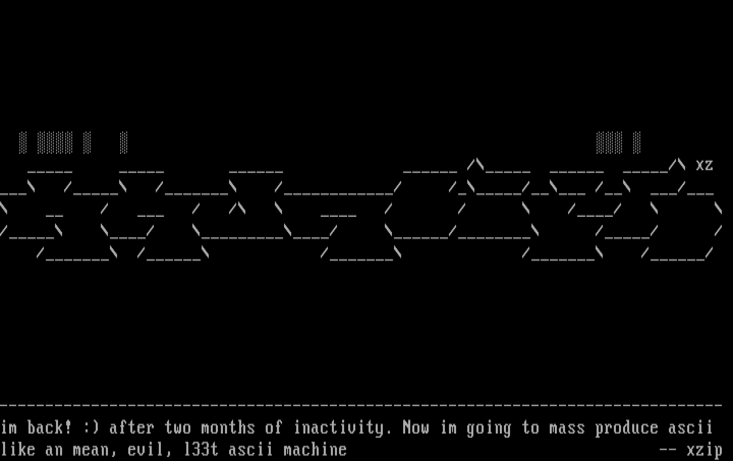 ------------------------------------------------------------------------------- im back! : after two months of inactivity. Now im going to mass produce ascii