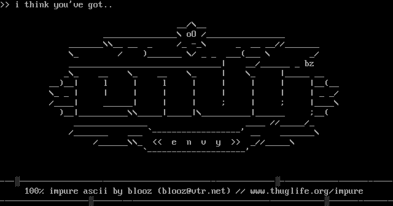 ----------- 100 impure ascii by blooz blooz@vtr.net // www.thuglife.org/impure