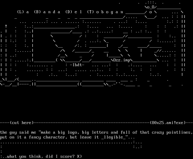 the guy said me make a big logo, big letters and full of that crazy pointlines,put on it a fancy character, but leave it llegible...