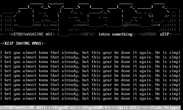rETRO!mAGAZINE O1-+-PageUP:-+-PageDOWN:-+-Quit:ESC--+--Code:Xzippo