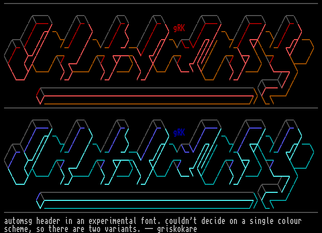 automsg header in an experimental font. couldnt decide on a single colour