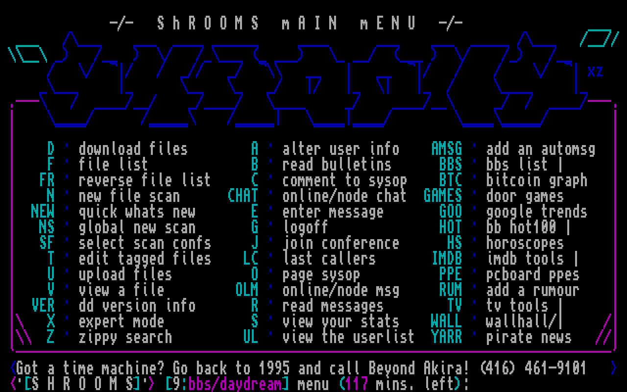 S H R O O M S 9:bbs/daydream menu 117 mins. left: