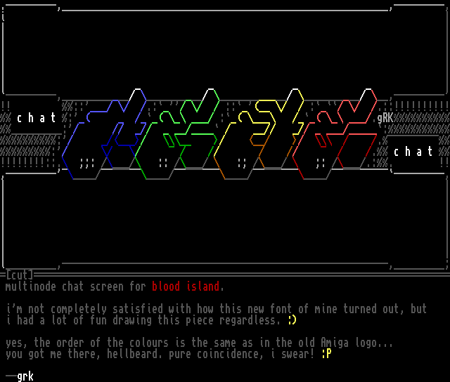 .---------,,---------,i ---------,/ / / / ,---------!! ::/ / /.:/ / / :: / / :/ / /.::!!!!!!!!!! c h a t : / / : / /.gRK:/ // // / / // // /::/ // / / / / /.:/ / / / // / // / /. c h a t !!!!!!!!::. : // :: // : // : //.:. !!,--------- ---------, l,----------------------------------------------------------,cut multinode chat screen for blood island.