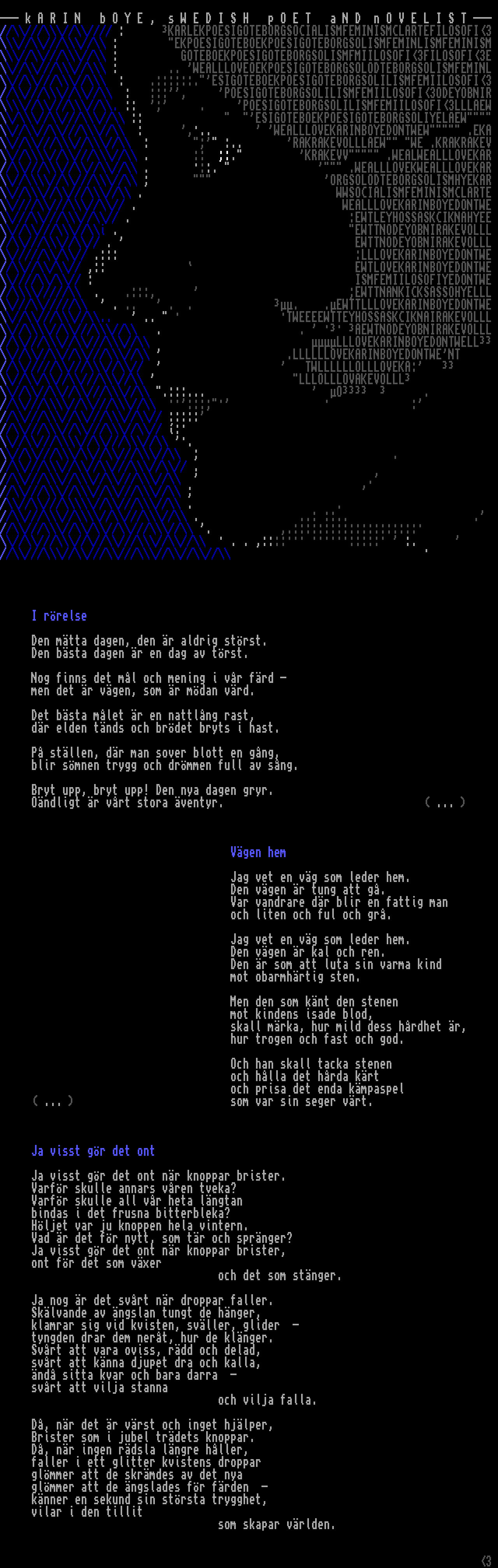 --- k A R I N b O Y E , s W E D I S H p O E T a N D n O V E L I S T ---