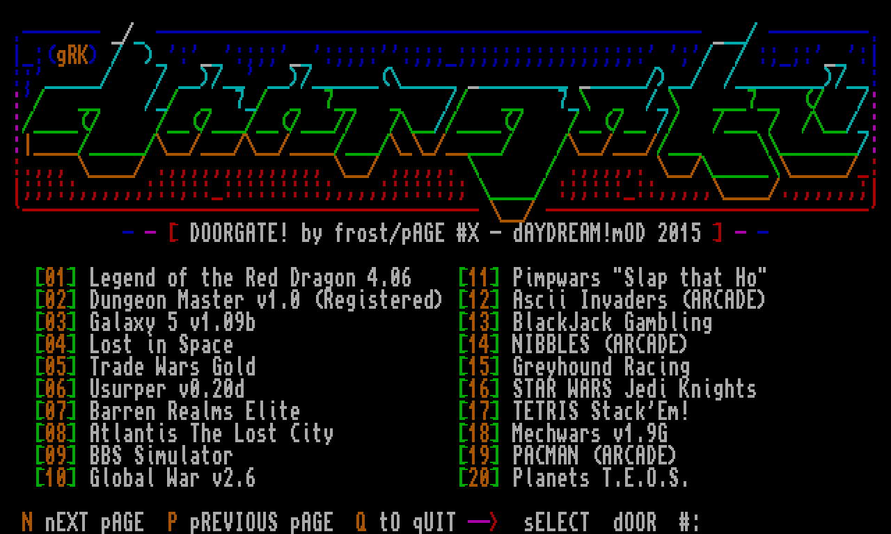 N nEXT pAGE P pREVIOUS pAGE Q tO qUIT -- sELECT dOOR :