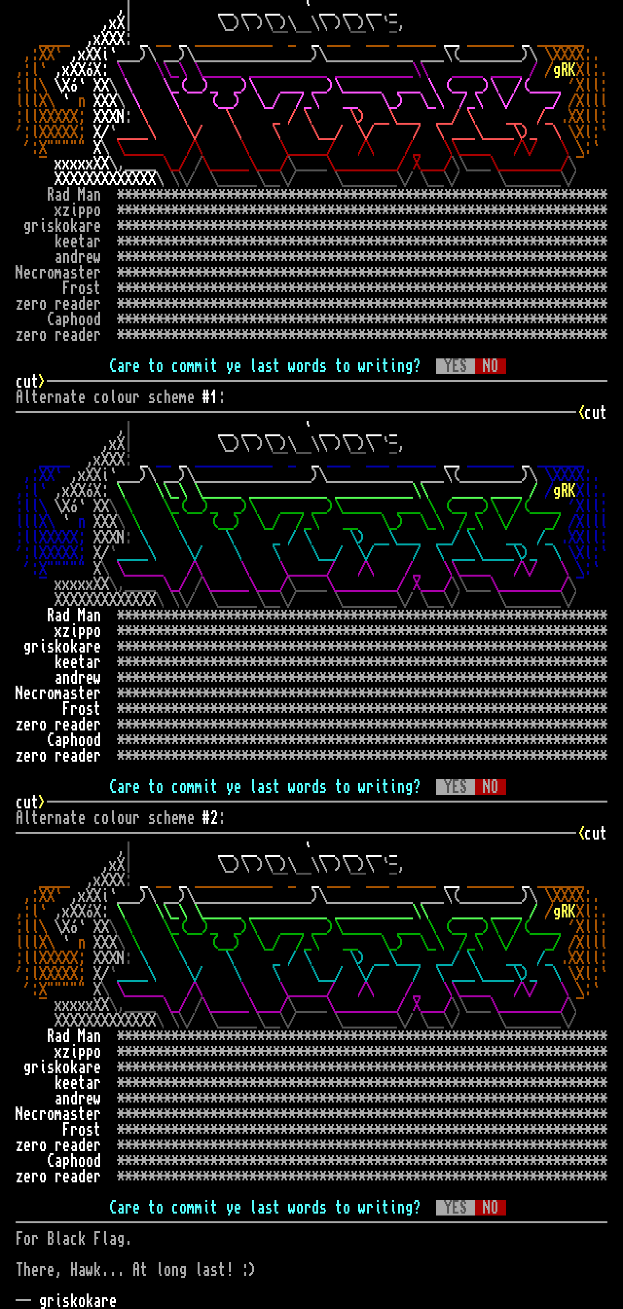 Care to commit ye last words to writing? YES NO