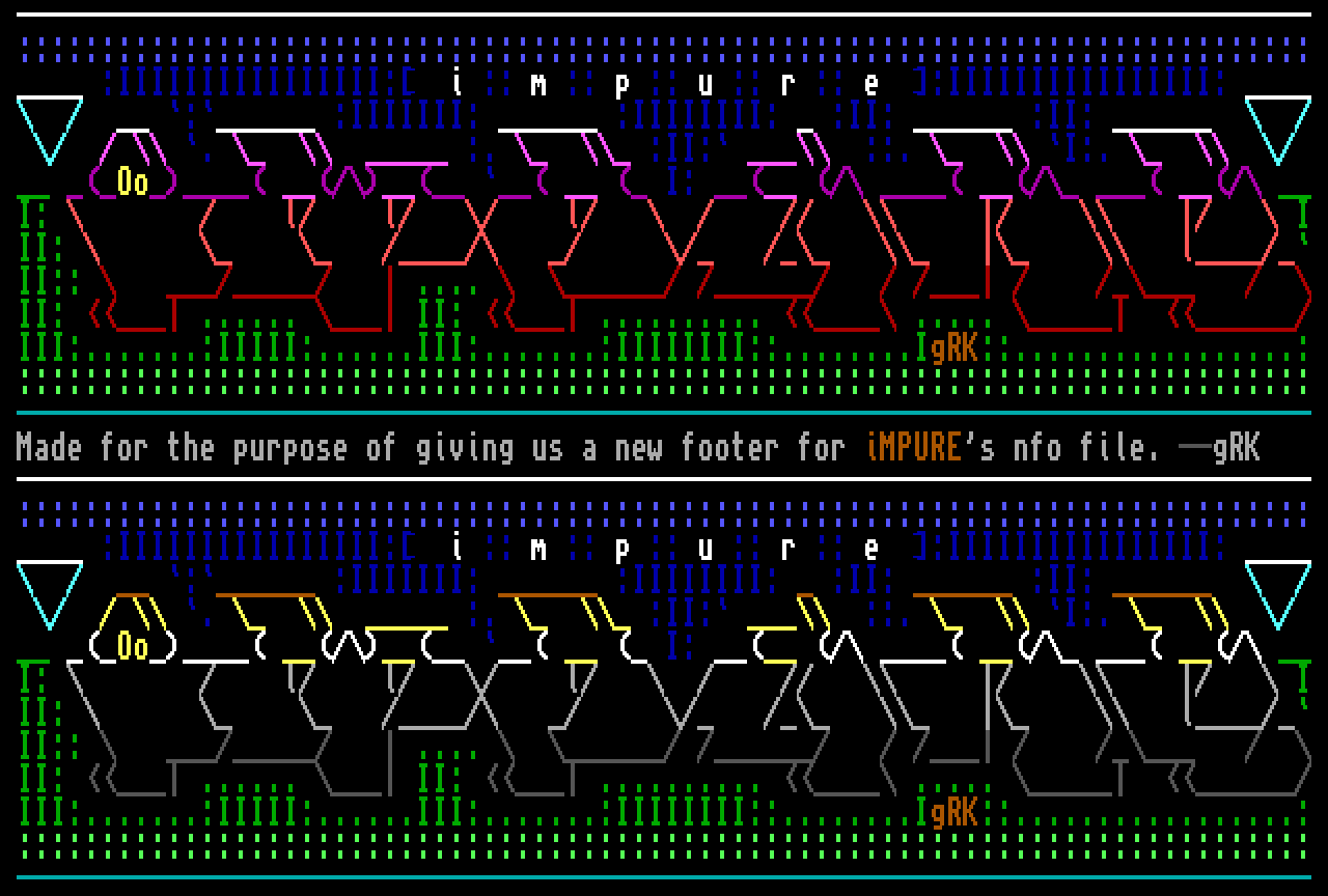 Made for the purpose of giving us a new footer for iMPUREs nfo file. --gRK