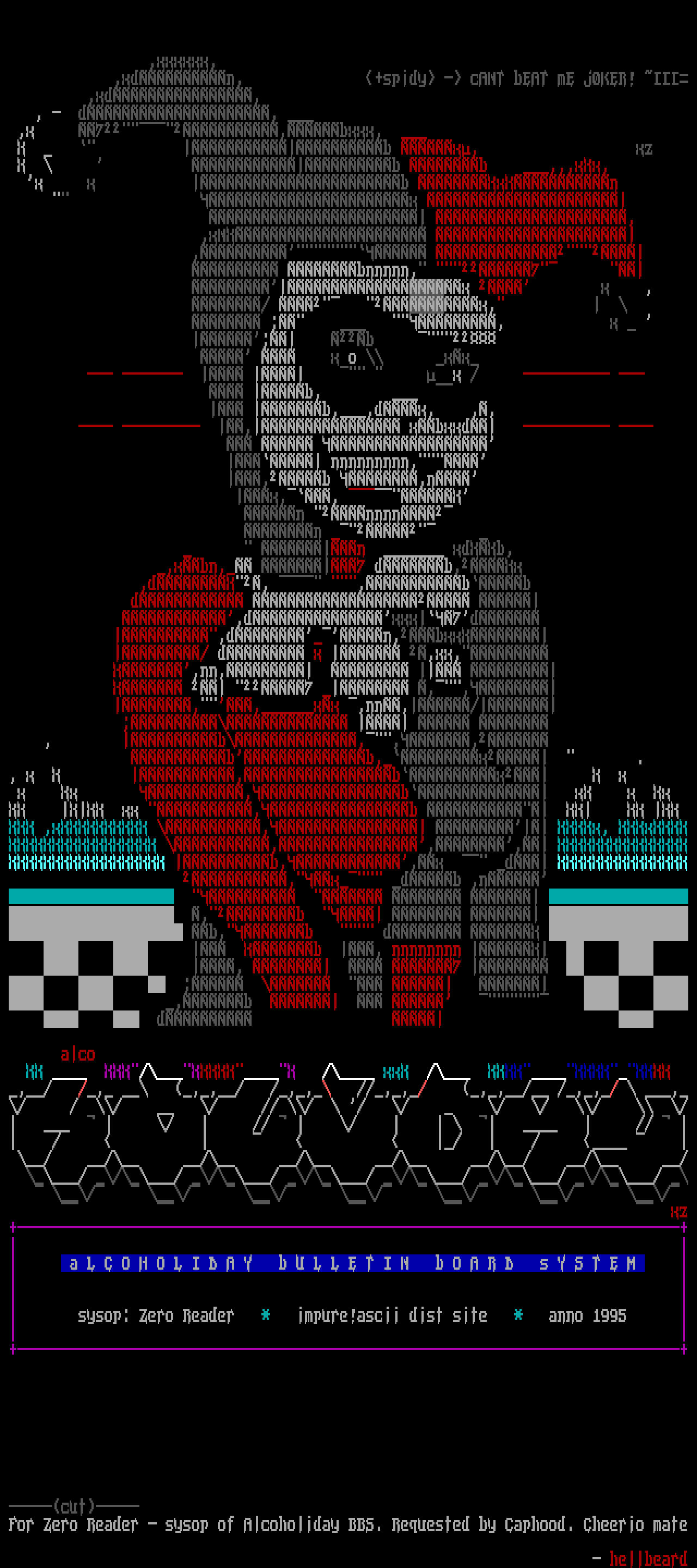 For Zero Reader - sysop of Alcoholiday BBS. Requested by Caphood. Cheerio mate