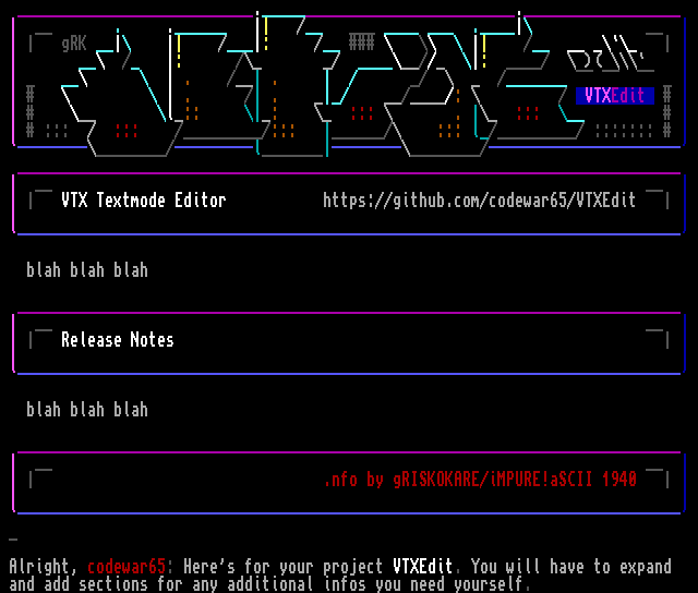 VTX Textmode Editor https://github.com/codewar65/VTXEdit