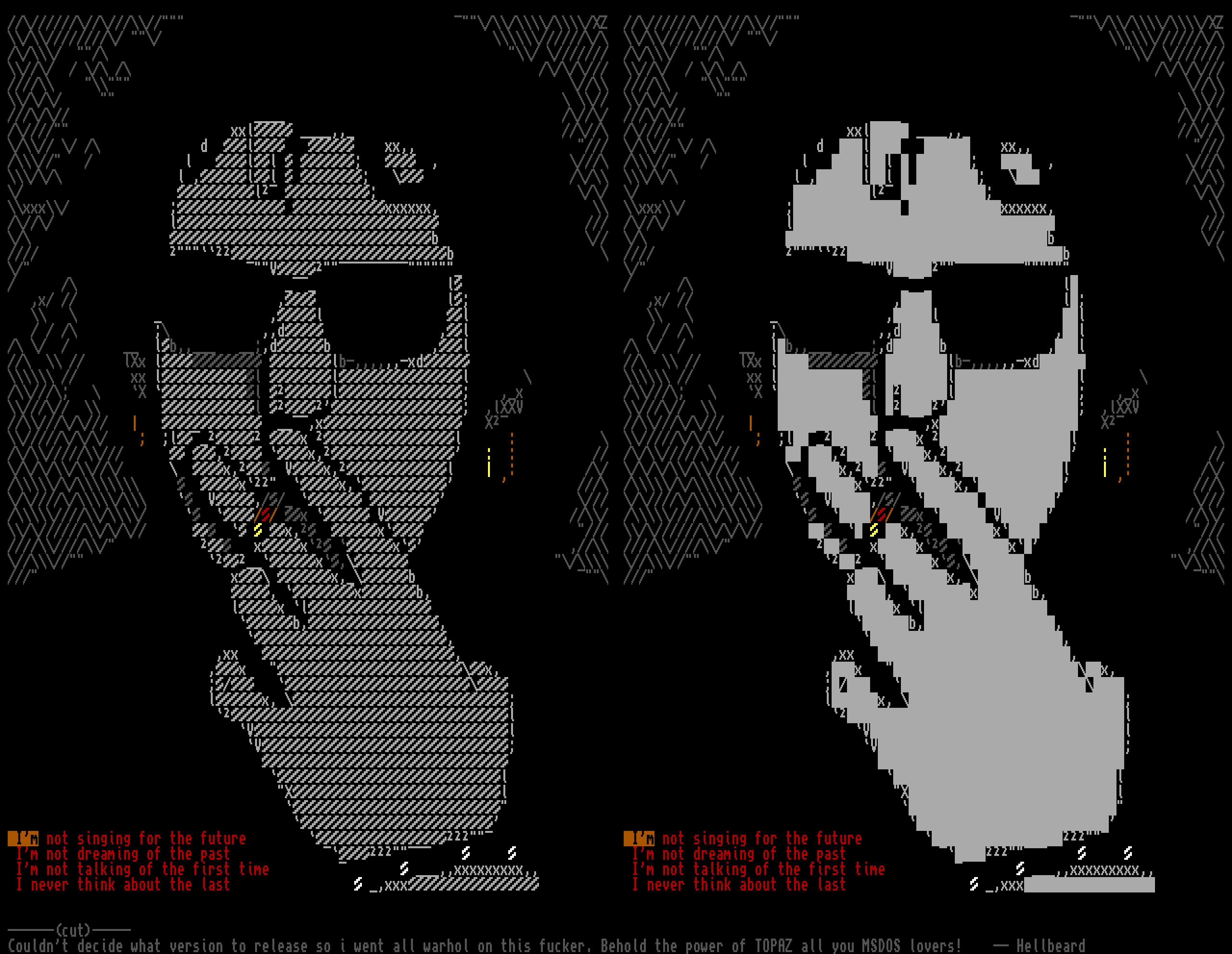 Couldnt decide what version to release so i went all warhol on this fucker. Behold the power of TOPAZ all you MSDOS lovers! -- Hellbeard