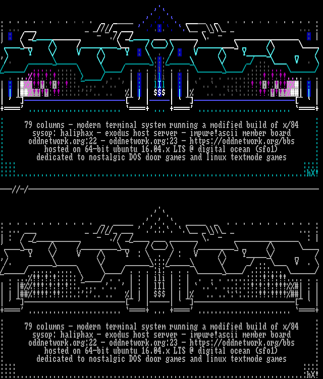: sysop: haliphax - exodus host server - impure!ascii member board :