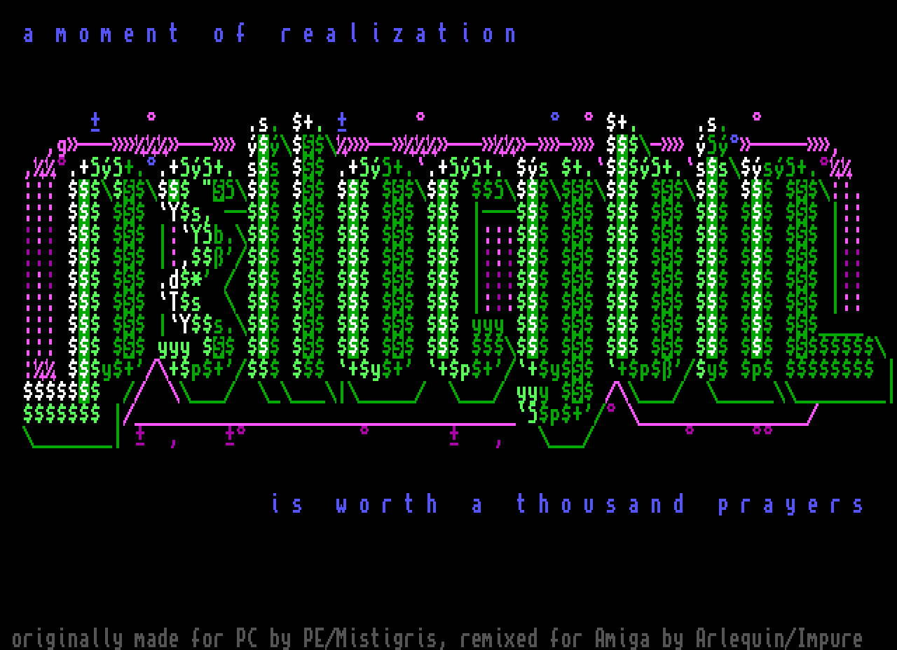 originally made for PC by PE/Mistigris, remixed for Amiga by Arlequin/Impure