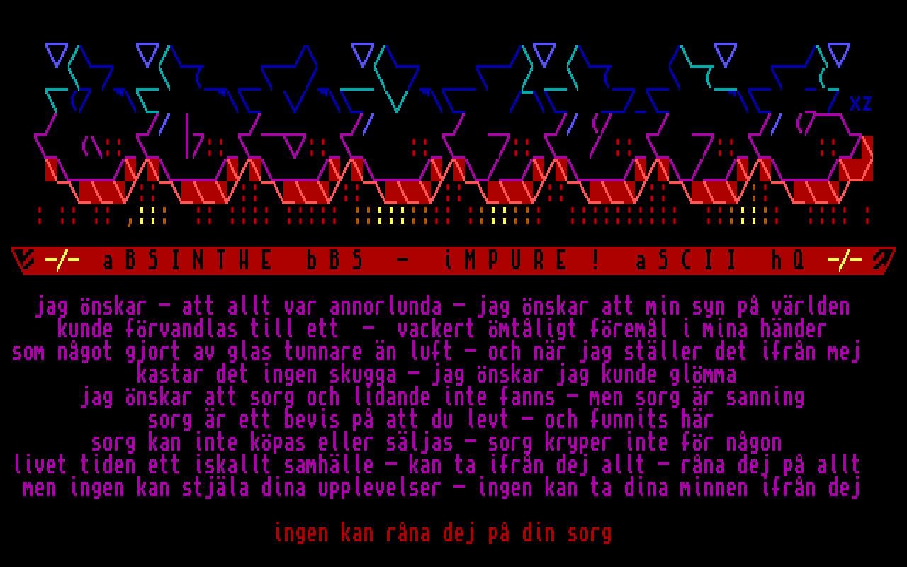 -/- a B S I N T H E b B S - i M P U R E ! a S C I I h Q -/- /