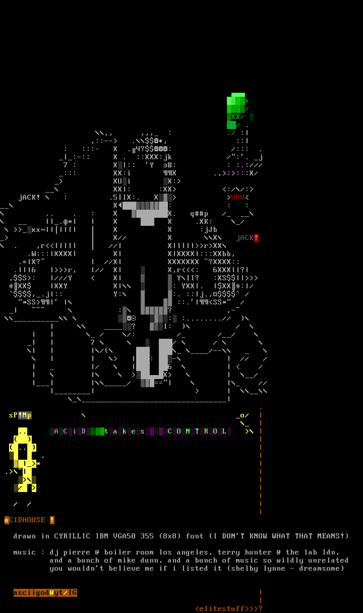 drawn in CYRILLIC IBM VGA50 355 8x8 font I DONT KNOW WHAT THAT MEANS!