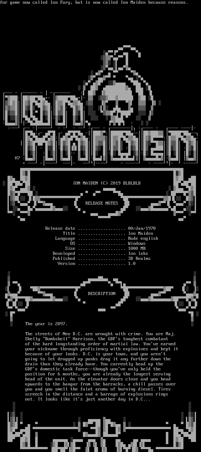 for game now called Ion Fury, but is now called Ion Maiden because reasons.