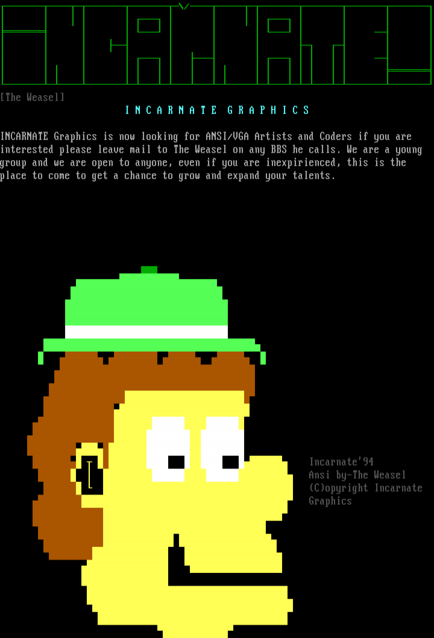 INCARNATE Graphics is now looking for ANSI/VGA Artists and Coders if you are