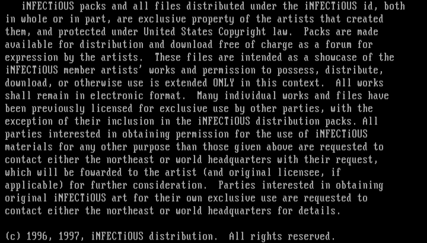c 1996, 1997, iNFECTiOUS distribution. All rights reserved.
