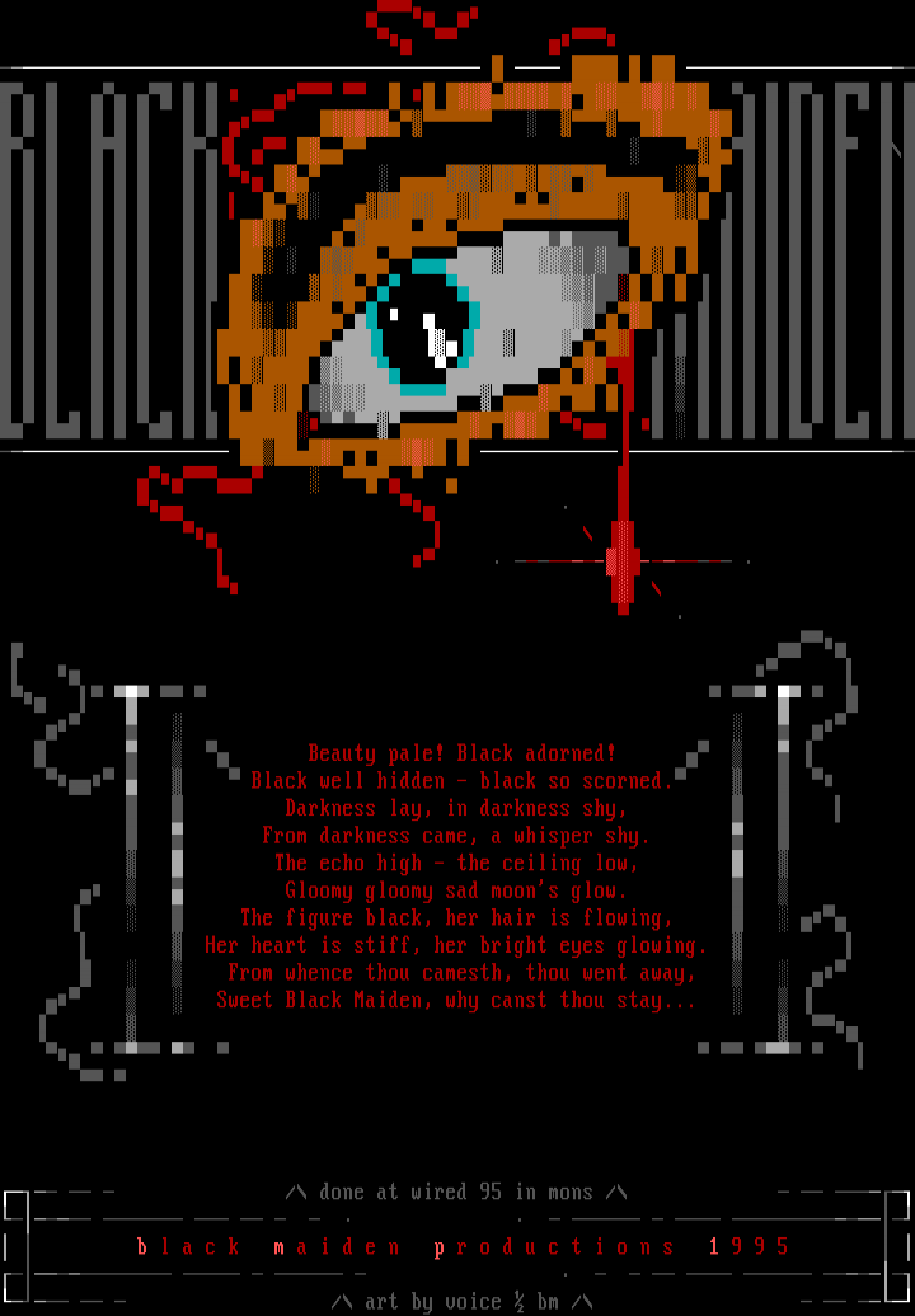 / done at wired 95 in mons / b l a c k m a i d e n p r o d u c t i o n s 1 9 9 5 / art by voice bm /