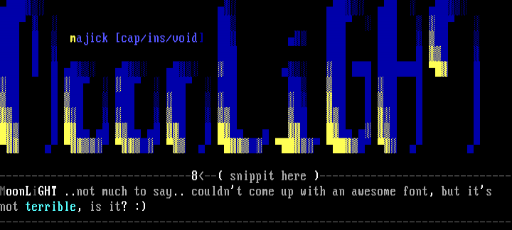 ------------------------------8-- snippit here ------------------------------MoonLiGHT ..not much to say.. couldnt come up with an awesome font, but its