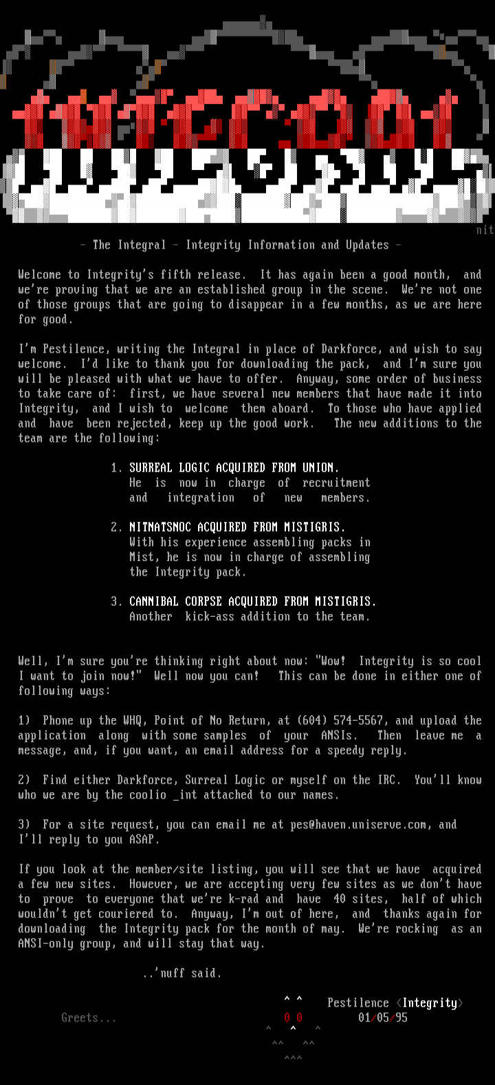 Welcome to Integritys fifth release. It has again been a goodmonth, and