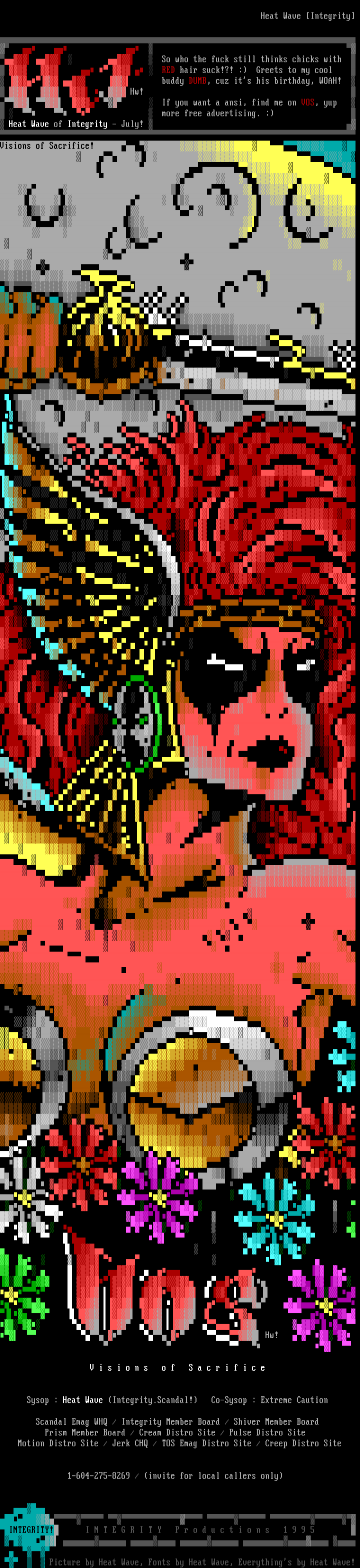 Hw!VisionsofSacrificeSysop:HeatWaveIntegrity.Scandal!Co-Sysop:ExtremeCautionScandalEmagWHQ/IntegrityMemberBoard/ShiverMemberBoardPrismMemberBoard/CreamDistroSite/PulseDistroSiteMotionDistroSite/JerkCHQ/TOSEmagDistroSite/CreepDistroSite1-604-275-8269/inviteforlocalcallersonly INTEGRITY! INTEGRITYProductions1995 PicturebyHeatWave,FontsbyHeatWave,EverythingsbyHeatWave!