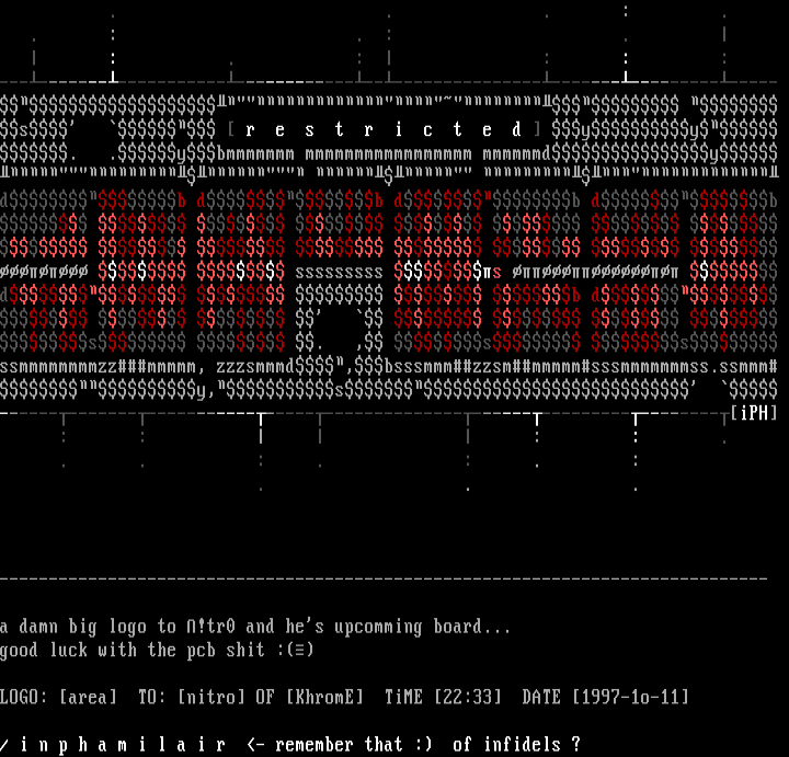 LOGO: area TO: nitro OF KhromE TiME 22:33 DATE 1997-1o-11