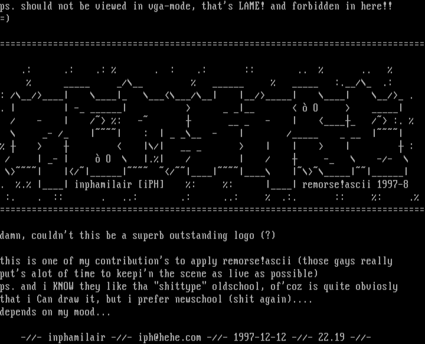 . . inphamilair iPH : : remorse!ascii 1997-8