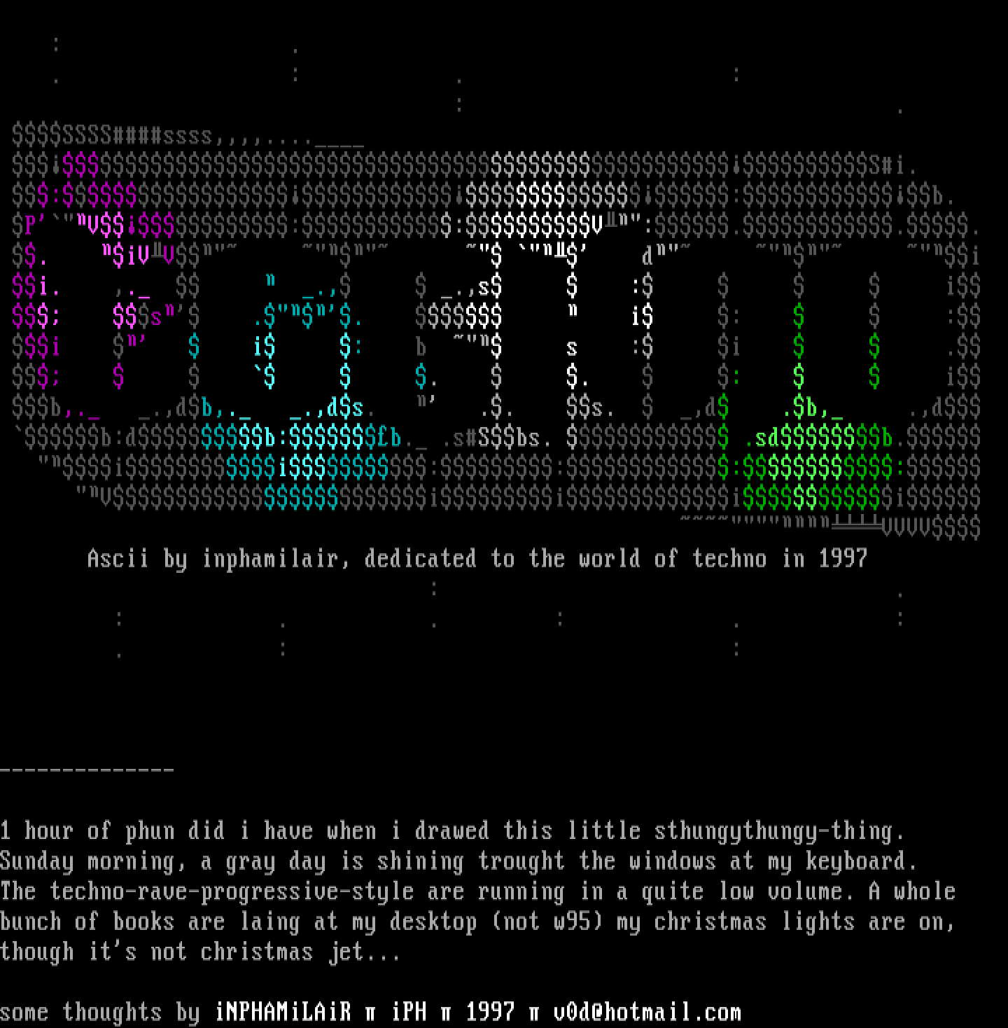 Ascii by inphamilair, dedicated to the world of techno in 1997