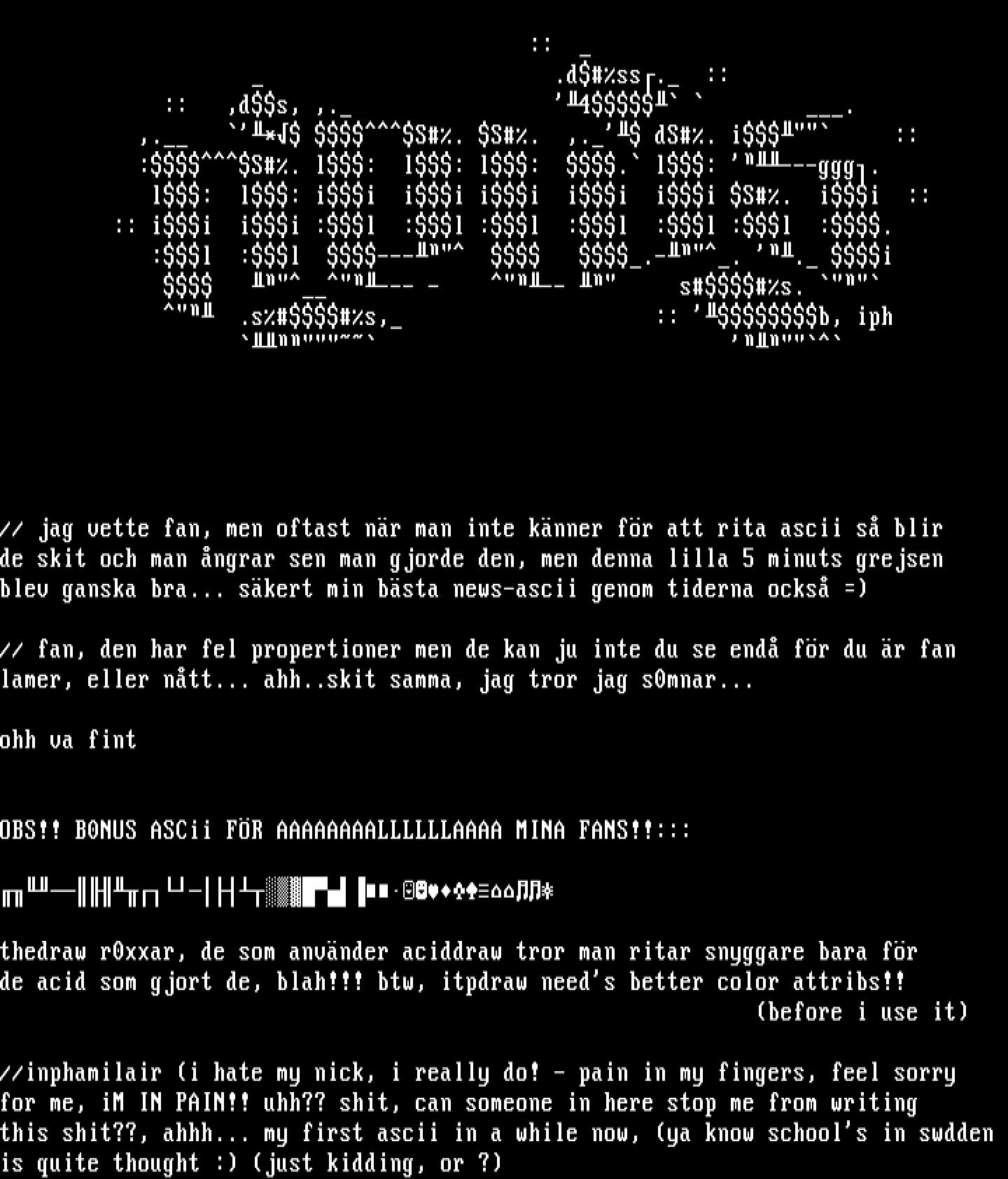 // jag vette fan, men oftast nr man inte knner fr att rita ascii s blir