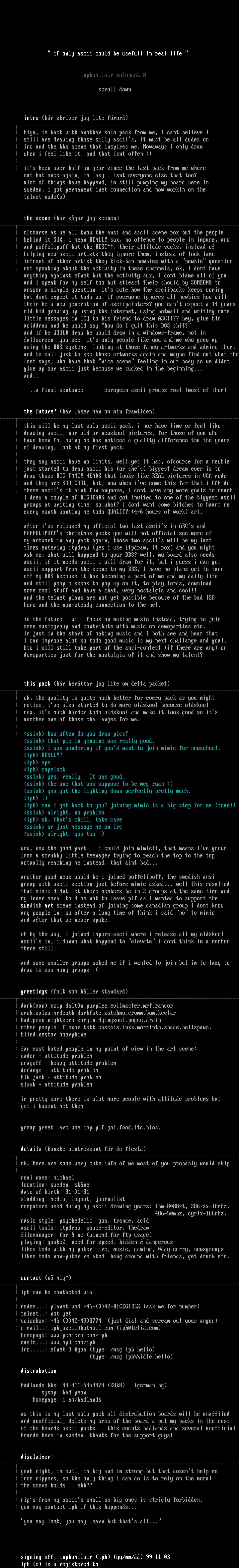 ------------------------------------------------------------------------------- ofcourse as we all know the ansi and ascii scene rox but the people