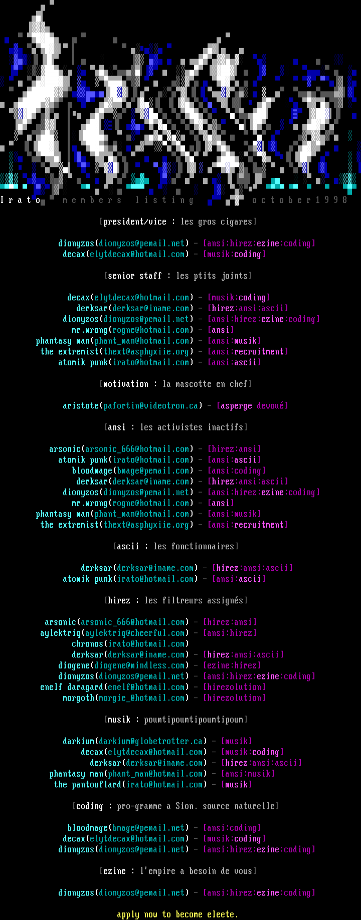 I r a to m e m b e r s l i s t i n g o c t o b e r 1 9 9 8