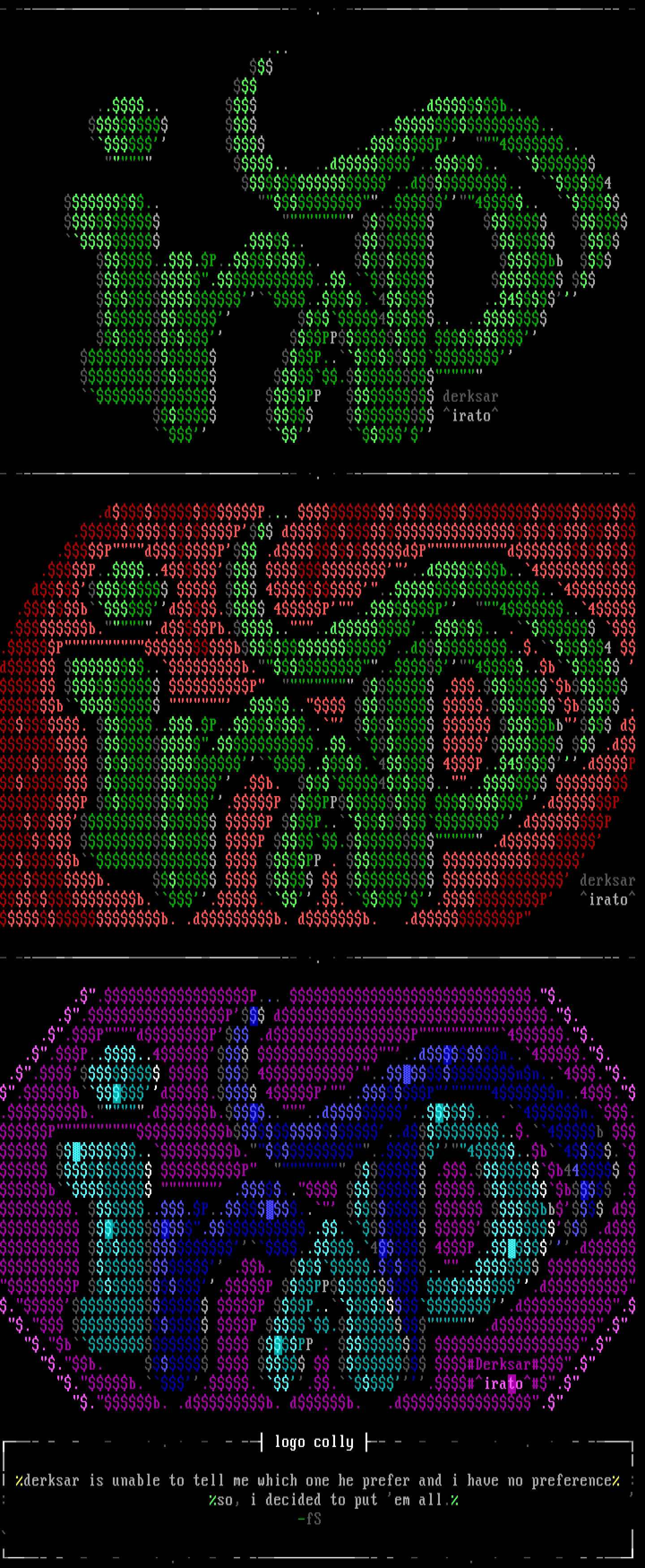 derksar is unable to tell me which one he prefer and i have no preference :