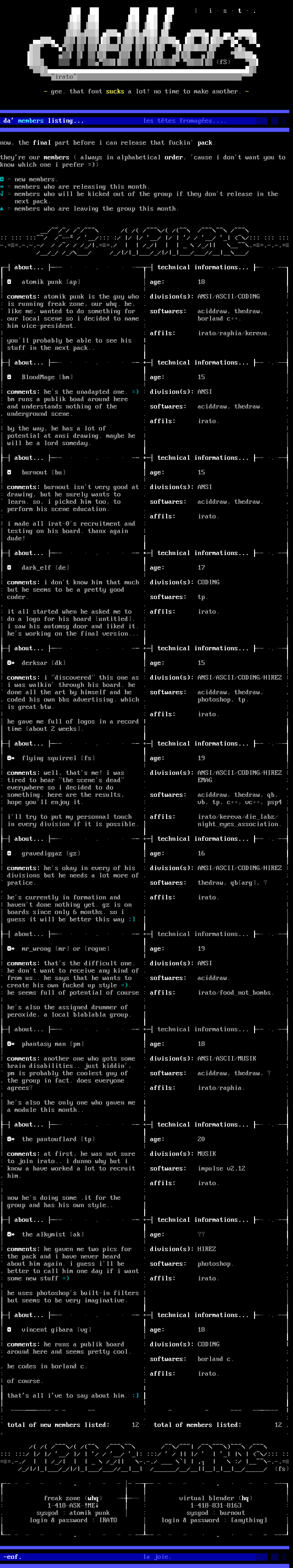 comments: atomik punk is the guy who : divisions: ANSI/ASCII/CODING