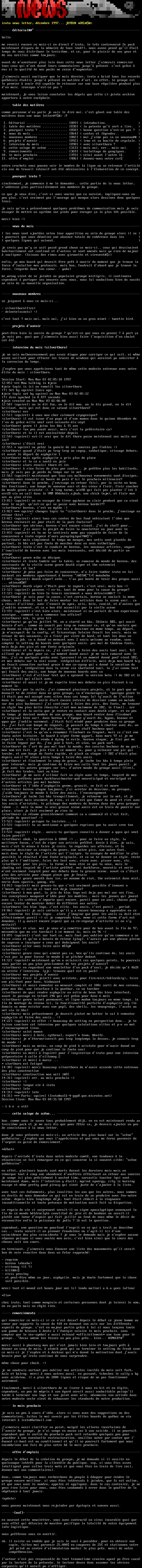 irato news letter, dcembre 1997... jOYEUX nOEL@