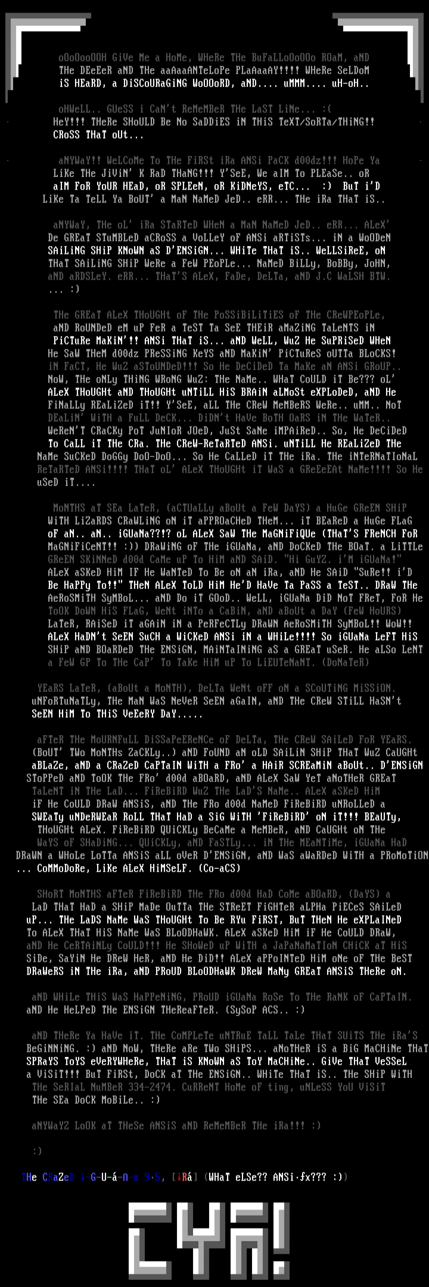 To CaLL iT THe CRa. THe CReW-ReTaRTeD ANSi. uNTiLL He REaLiZeD THe