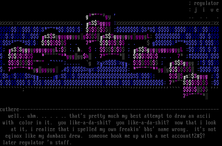 well.. uhm. .. . . .. thats pretty much my best attempt to draw an ascii